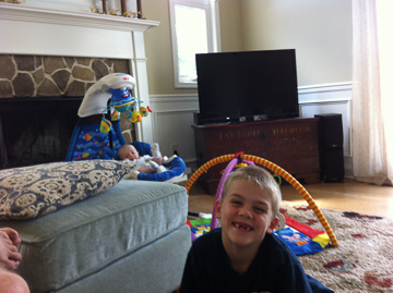 He feels bad that I’m here with him, telling me in his own garbled speech that I should be home with J and the boys. I insist that they’re fine and that this is where I want to be. I then text J, asking him to take and send photos of the boys that I can share with Papa. And J quickly obliges: