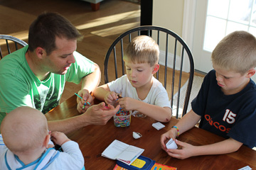 And something about him helping our boys create wrist bands and necklaces with tiny rubber bands and a crochet hook warms my heart and makes me smile.